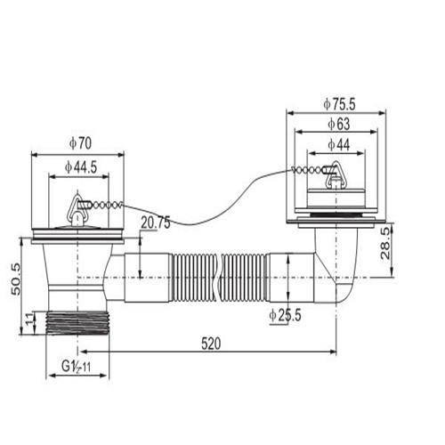 Product name: Bathtub drain with overflow pipe brass plug with chain S4009